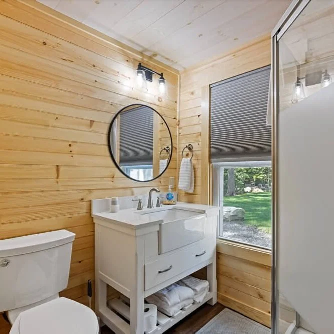 42 Cole Cottage features a total of 8 well-appointed bedrooms, with six located in the spacious main house and two situated in the charming private bunkhouse. All rooms are thoughtfully named after the beautiful local islands, enhancing the cottage's charming character. The queen bedrooms offer stunning lakeside views, providing an idyllic retreat. Additionally, there are two king bedrooms located in the main house and two more king bedrooms nestled within the bunkhouse, ensuring comfortable accommodations for all guests.